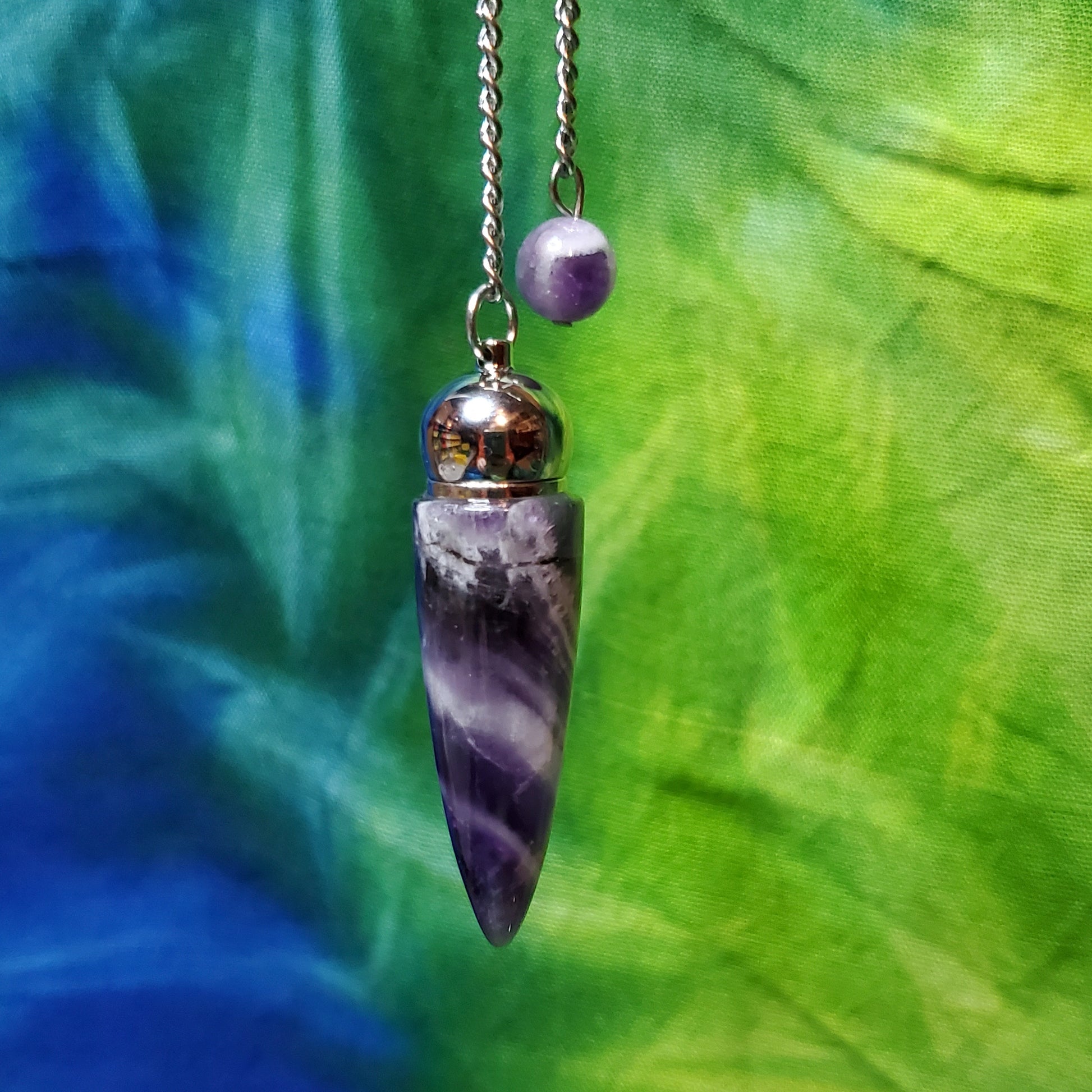 Amethyst is a favorite for spiritual connection. Resonates with Crown chakra. Awesome for communicating with our angels and spirit guides, provides protection and purification. Helps with focusing our thoughts. Truly an all in one stone! Surgical grade stainless steel chamber with a stainless steel curb chain and matching bead. It will never rust, tarnish or fade. Built to last a lifetime! Chamber unscrews and you can put crystal chips, a sprig of your favorite herb, a dab of essential oil or even ashes; whatever you want to enhance your dowsing experience.