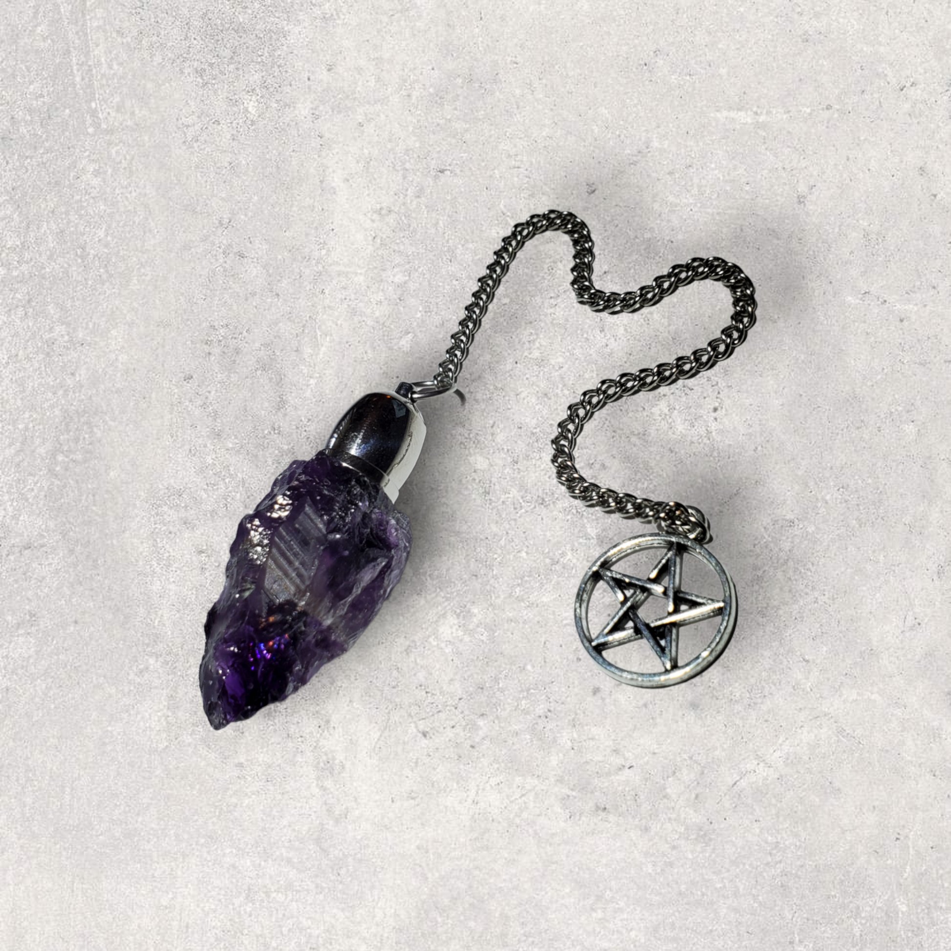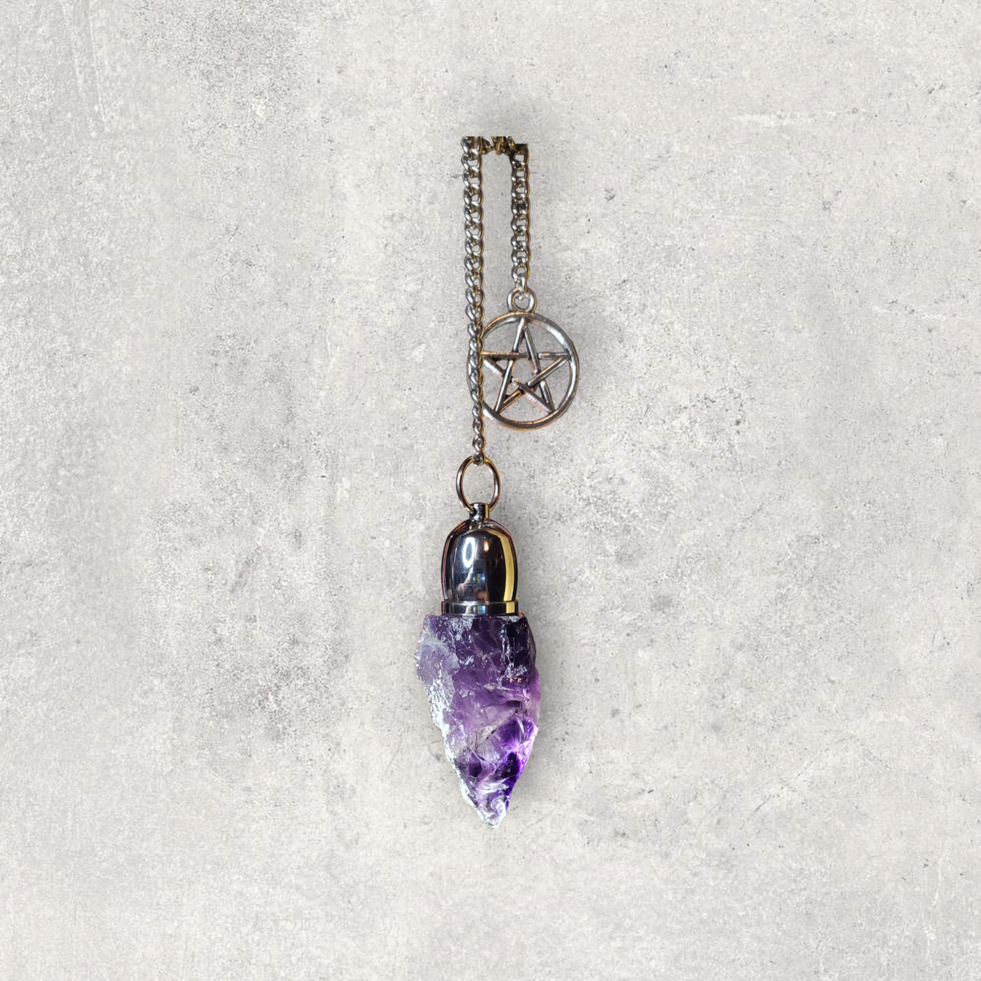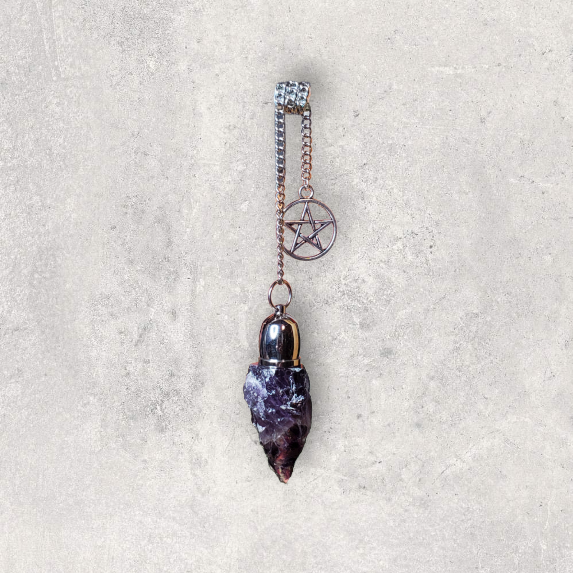 Rough Amethyst point with Dome chamber and Pentacle charm.