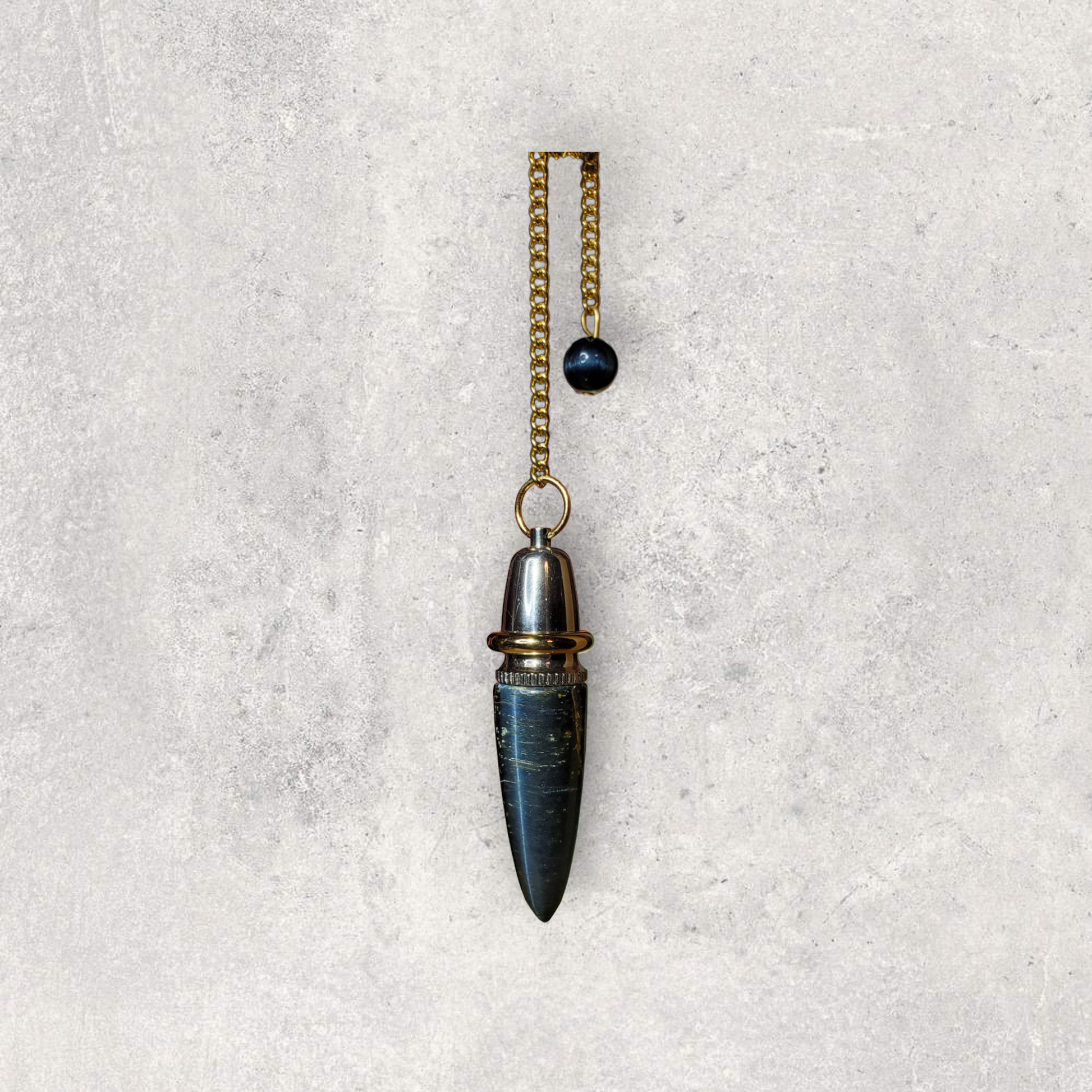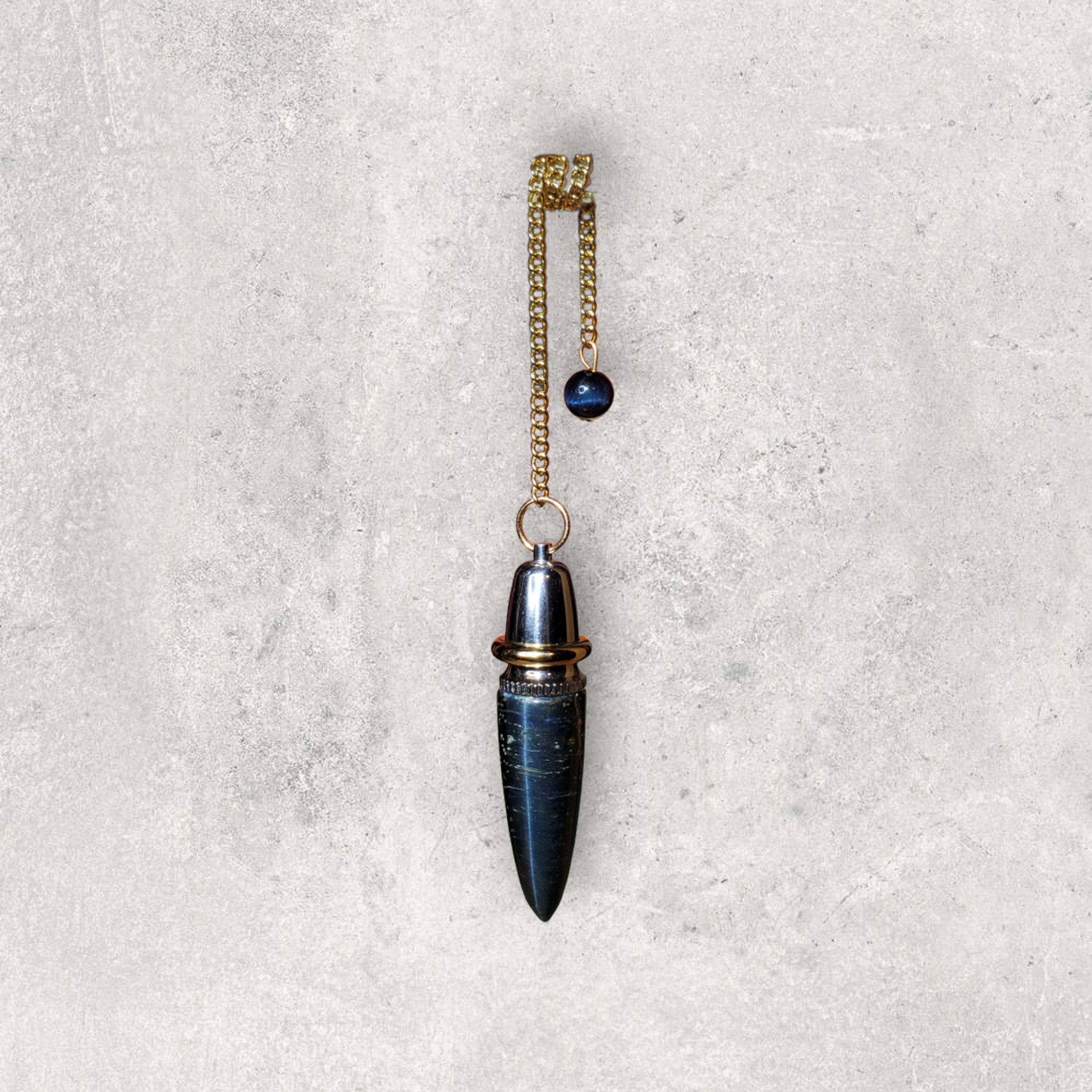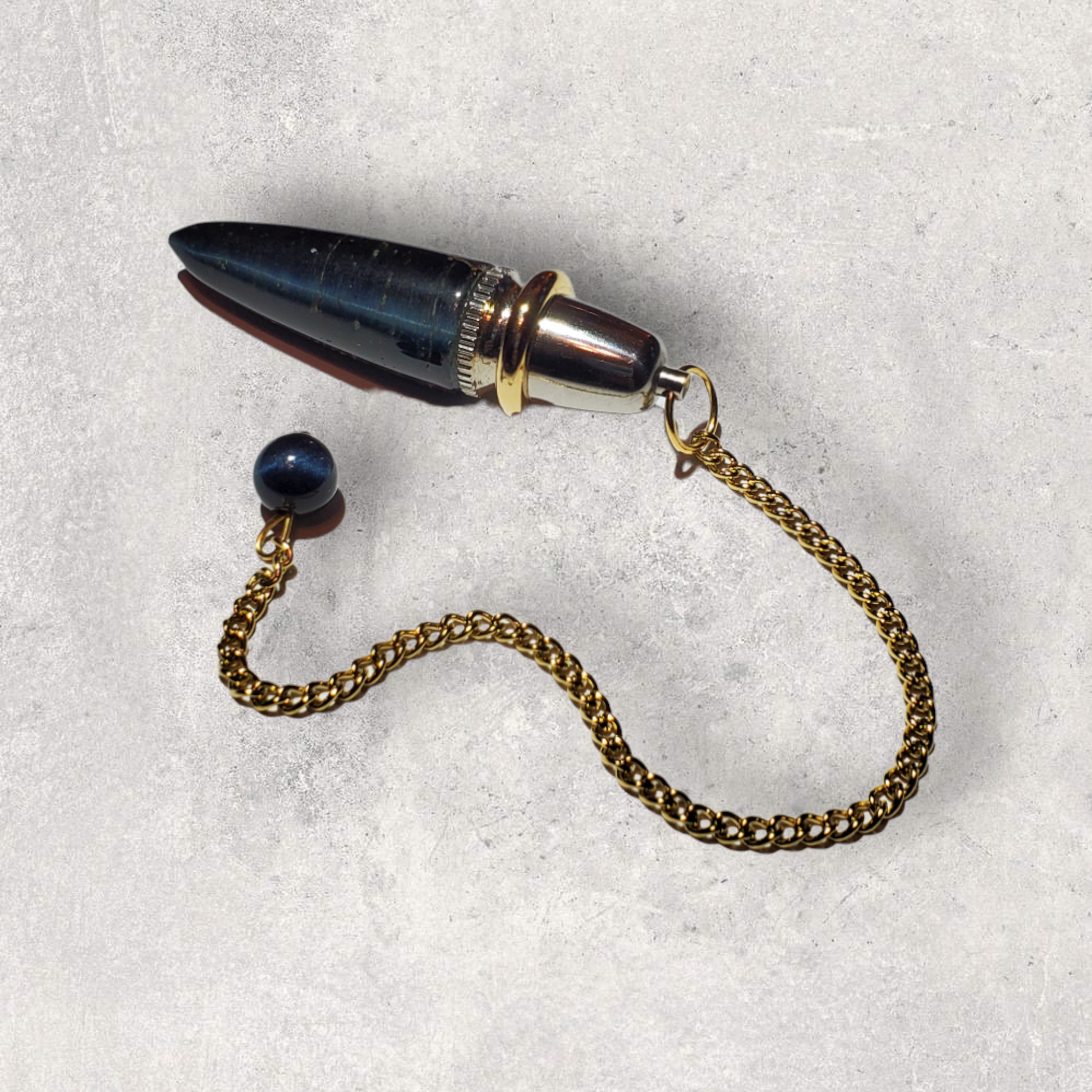 This pendulum has a 24K gold chamber which contain Himalayan crystal chips which amplify the properties of the gemstone point used for pendulum dowsing. Each AR (Amplified Resonance) pendulum comes with clear Himalayan Quartz crystals, we also sell over a dozen different crystal chips that you can put in the chamber. 24k Gold energy ring amplifies the contents of the chamber and gemstone. Gold is a super energy conductor and never tarnishes or looses conductivity.