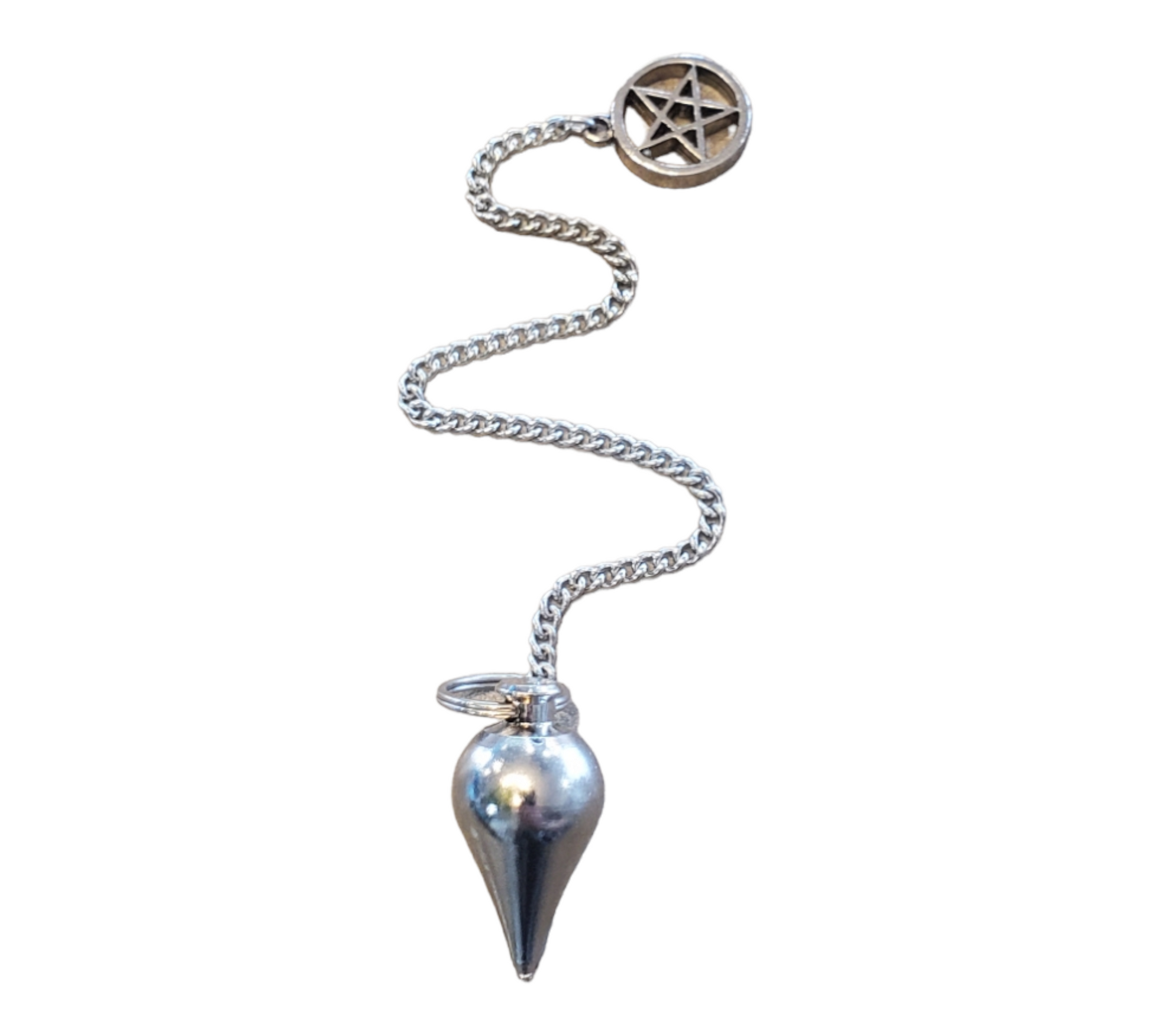 Our most popular C100 model teardrop pendulum on stainless steel curb chain with a classic Pentacle.