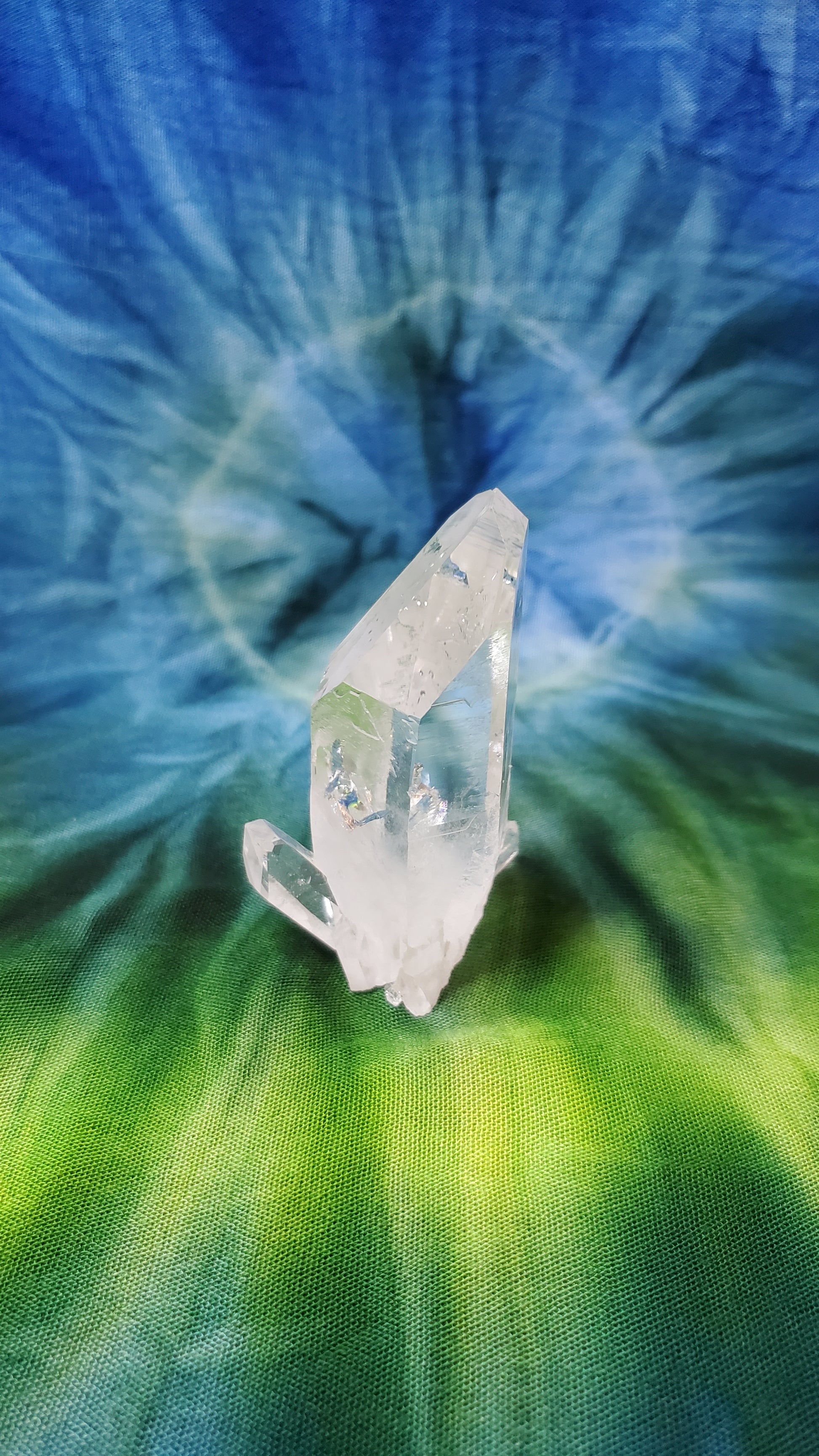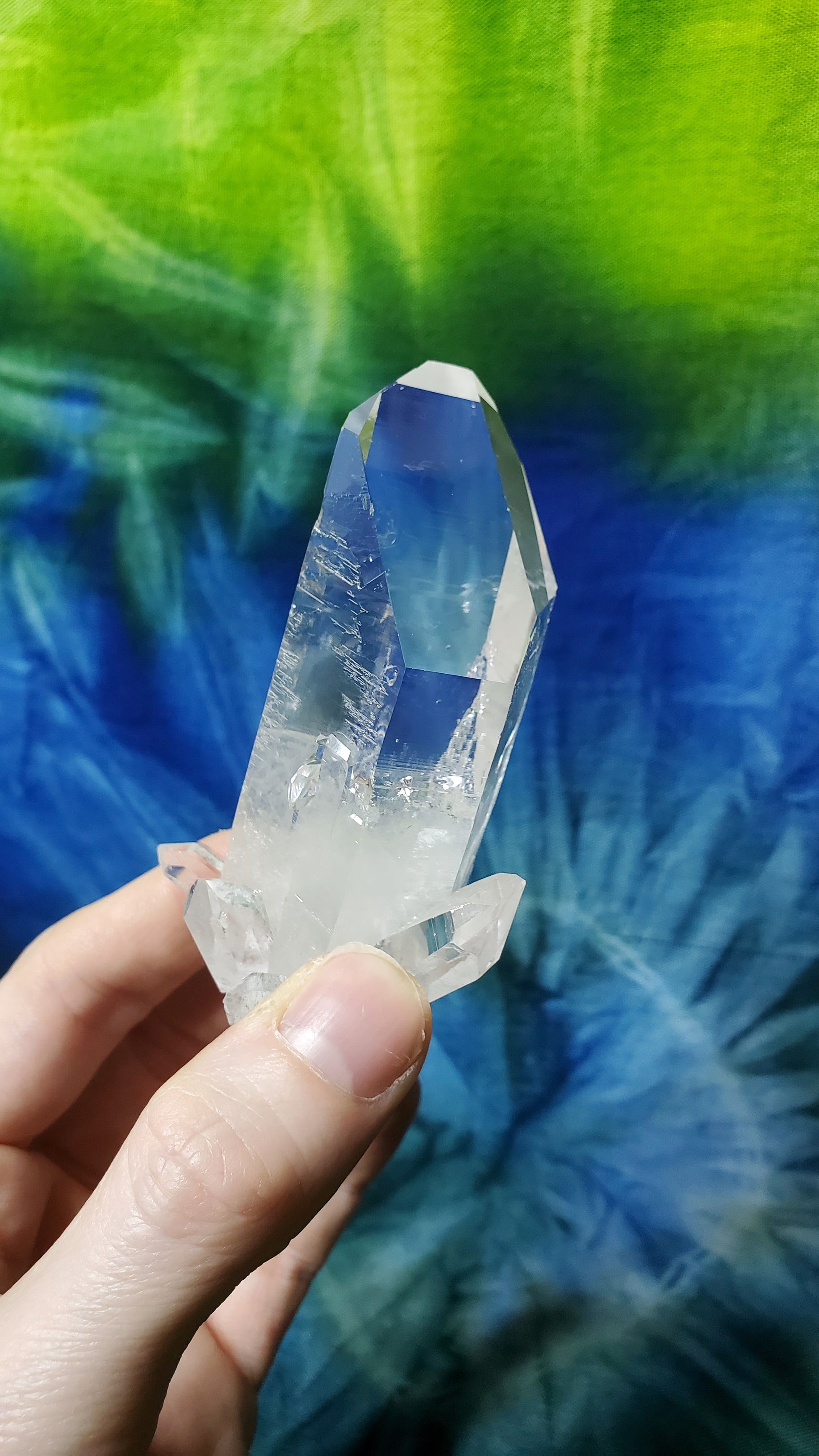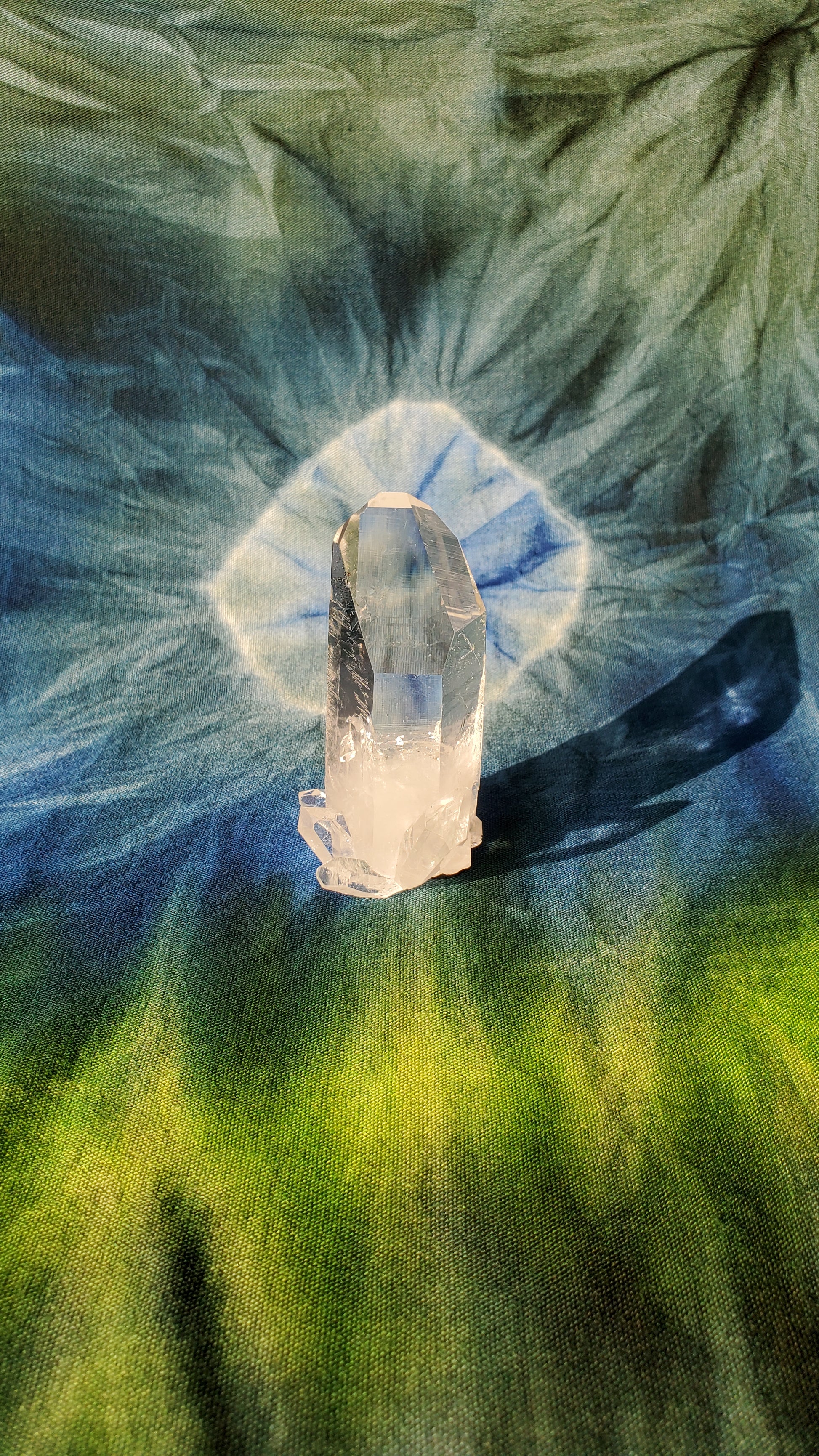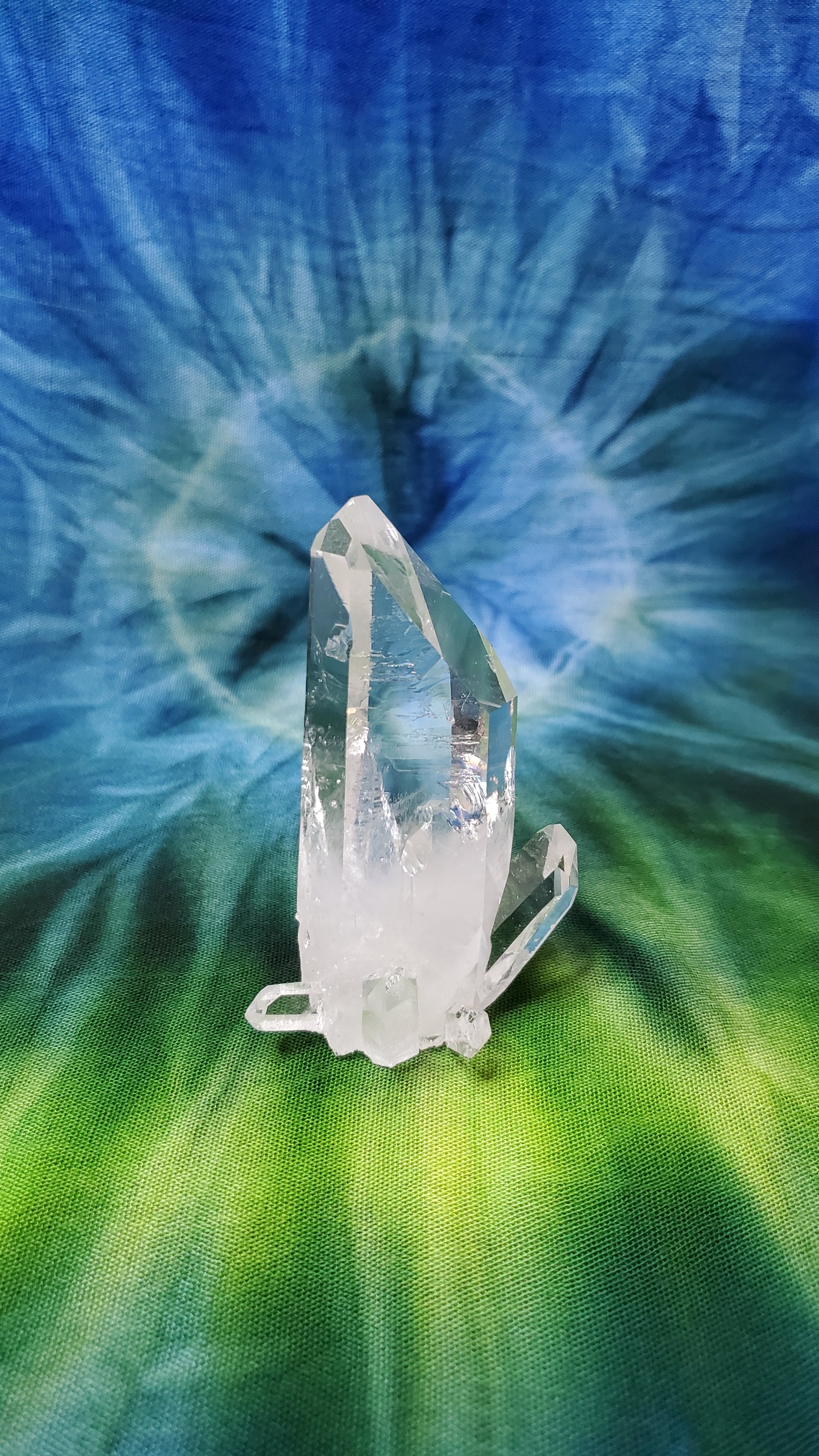 High Quality natural Quartz specimen from the Colombian Mountains. Hardness: 7. Crystal system: Hexagonal (Trigonal). Quartz is piezoelectric which means as you apply physical pressure to the stone, you are compacting the ions that it is made out of causing vibrational frequency to emit. Weighs 4.3 oz (121 g) and measures 1.25"x2"x3.5"