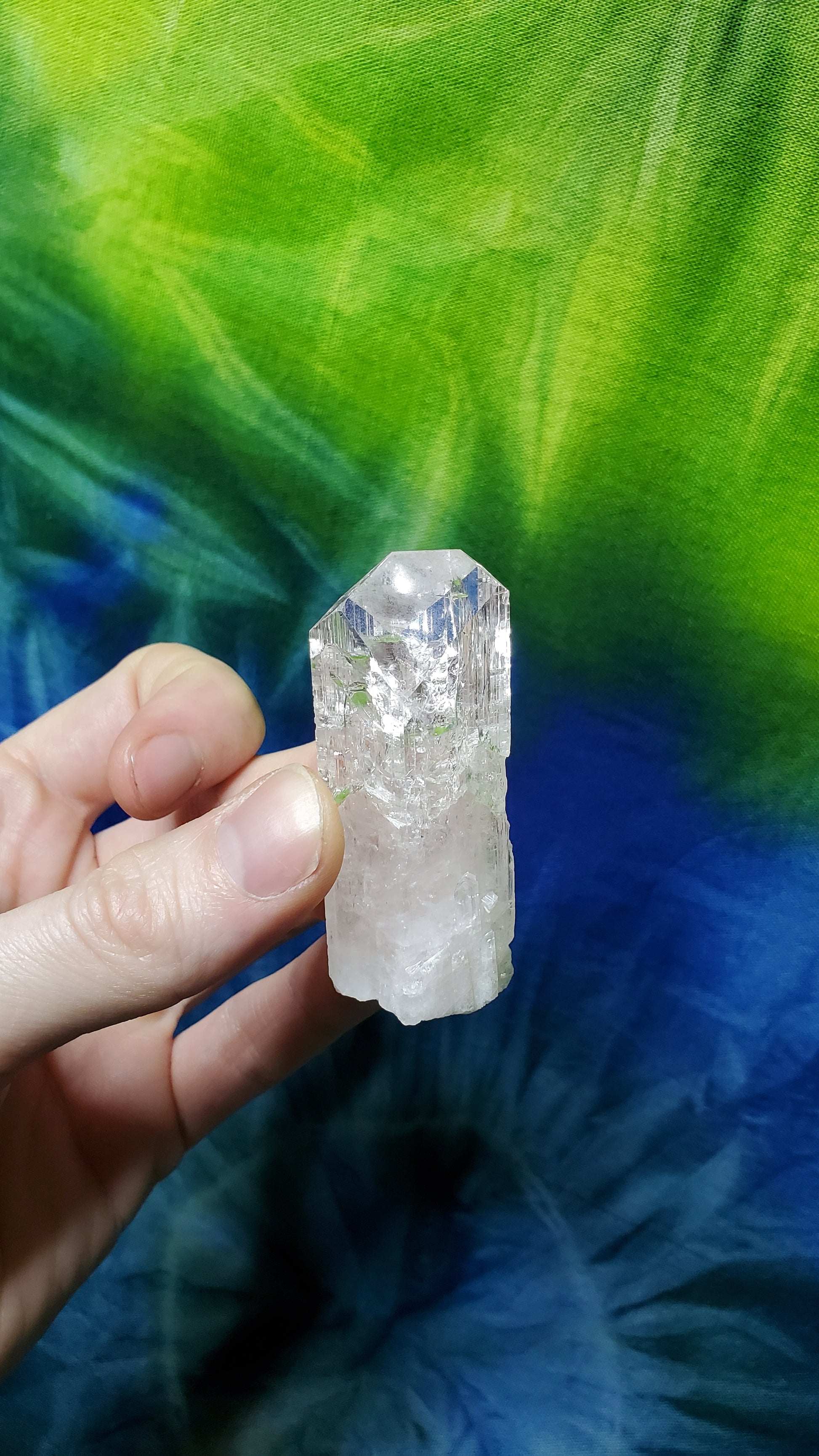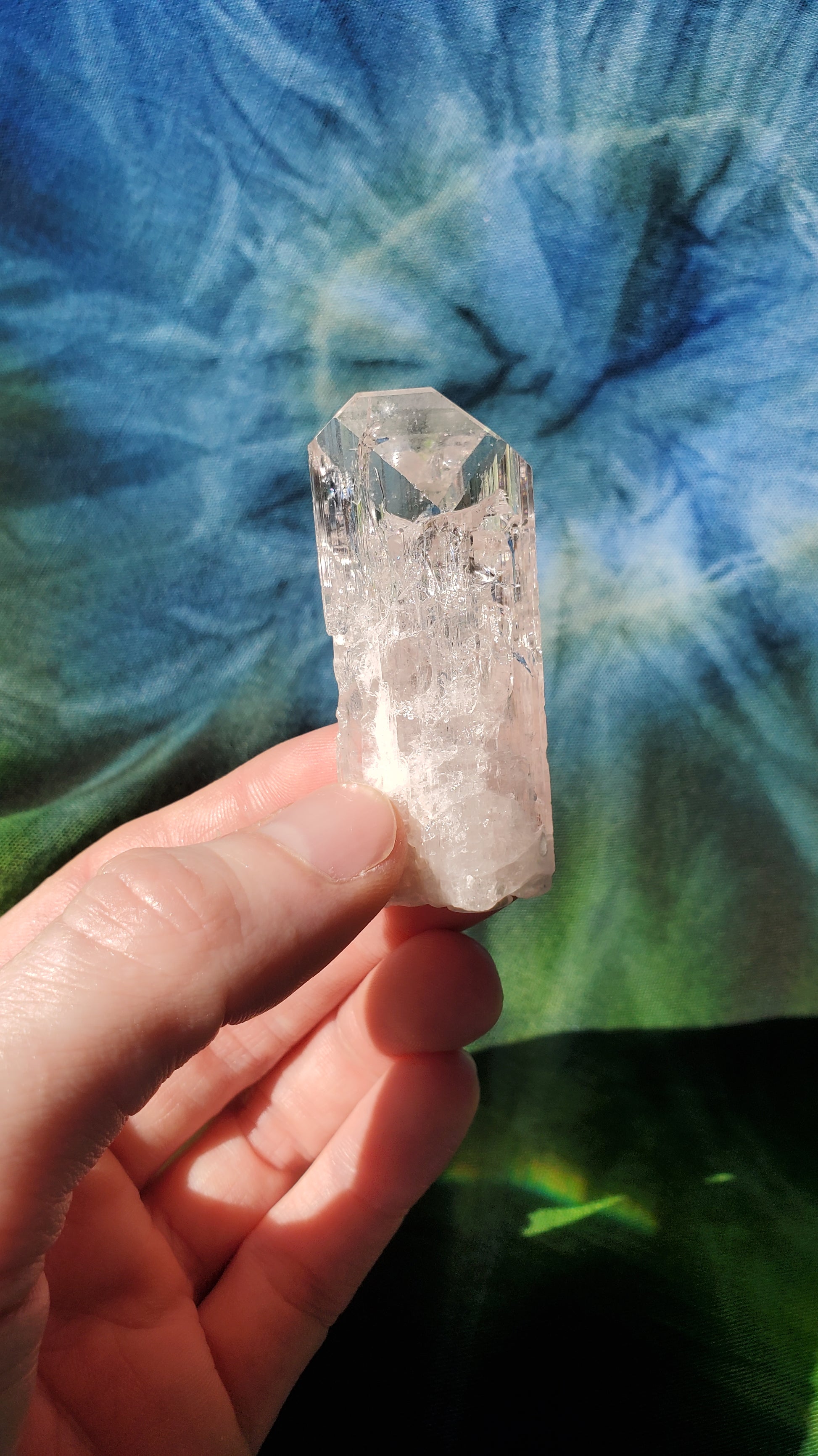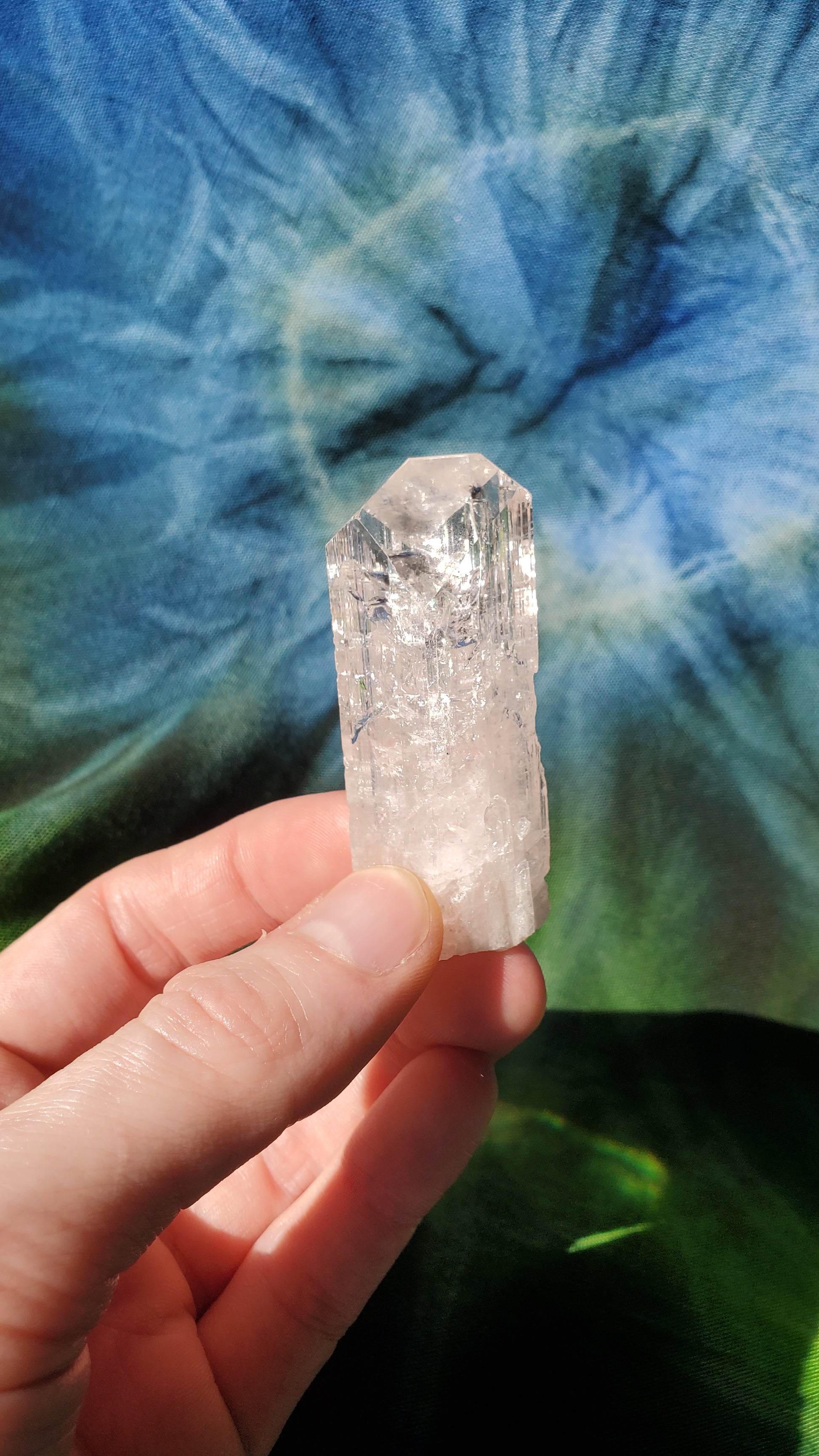 It can be difficult to find Danburite specimens with unblemished points. This particular crystal has a perfect point. Mined in Charcas, San Luis Potosi, Mexico. Crystals are usually four-sided and their terminations (points) are chisel shaped.